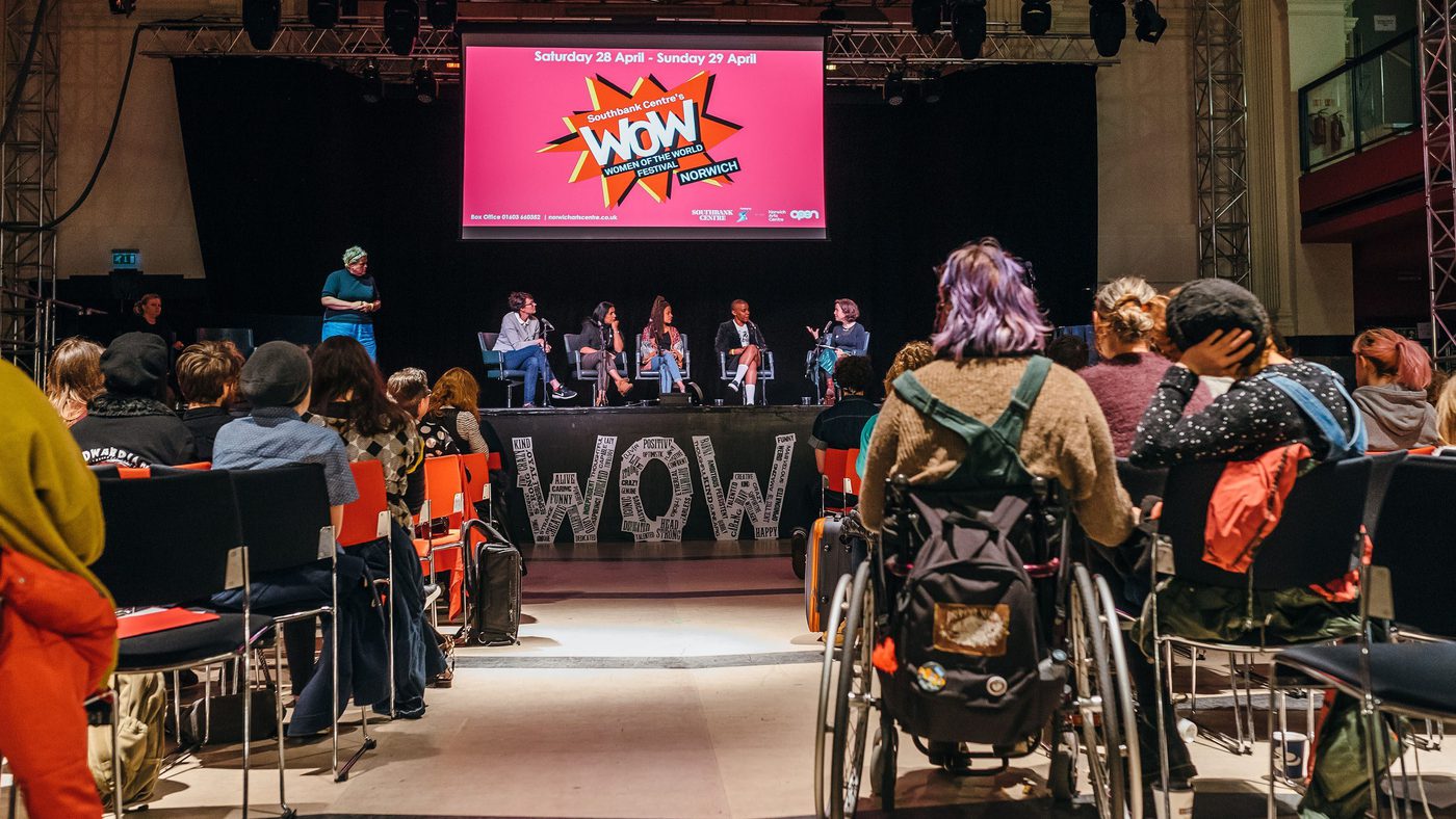 WOW Norwich took place on 28-29 April 2018 at Open, a former banking hall turned arts space in the heart of the city, and Norwich Arts Centre. The festival also included exhibitions across venues in Norwich and hosted a schools day for secondary school students on 27 April. It brought together hundreds of women, girls and non-binary people for two days of discussion, performance and community connection – led by WOW’s commitment to open dialogue and joyful activism.
